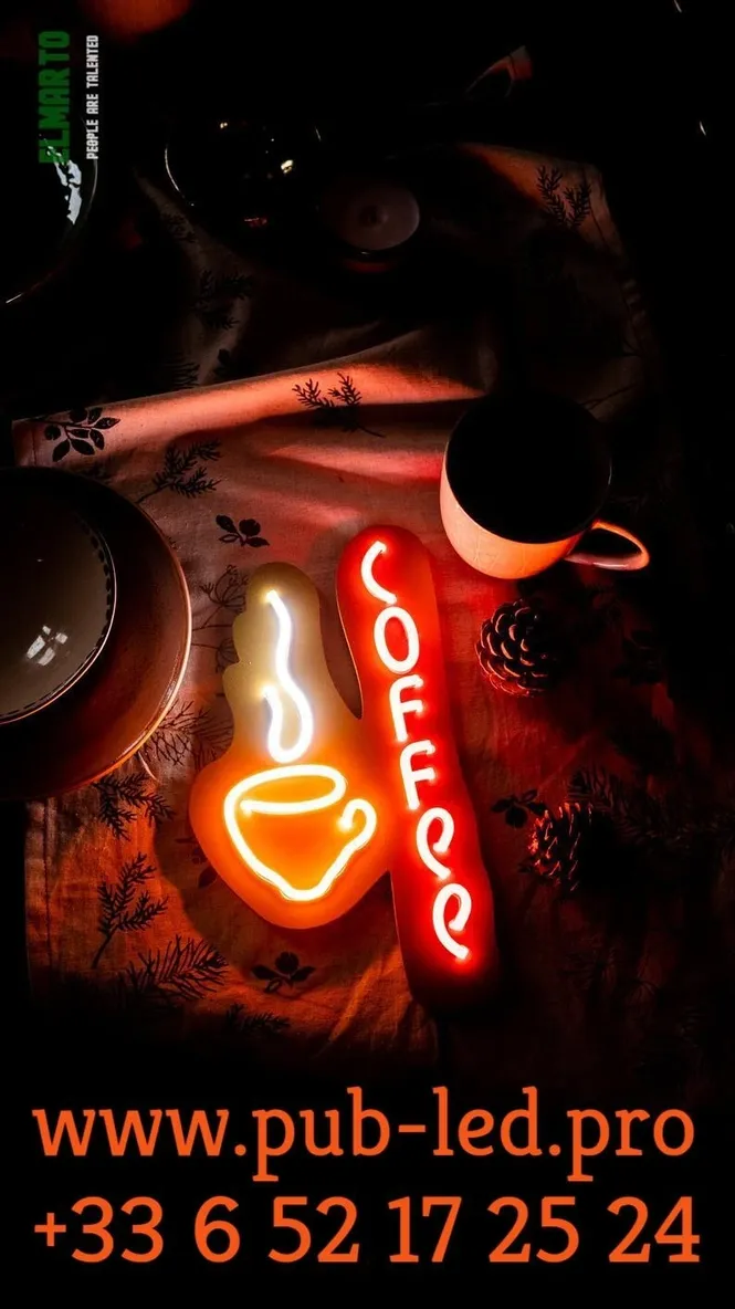 Le Néon Flex Café est l’éclairage parfait pour quiconque cherche à ajouter une touche moderne et personnalisée à son espace. Que ce soit pour une enseigne néon flexible sur mesure, un panneau lumineux néon flex ou une décoration néon personnalisée, ce produit est l’option idéale pour une éclairage néon flex sur mesure. Il transforme vos idées créatives en réalité, tout en offrant une performance énergétique exceptionnelle. Donnez à votre café ou restaurant l’ambiance qu’il mérite avec le Néon Flex Café.