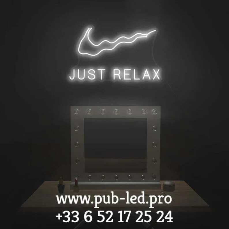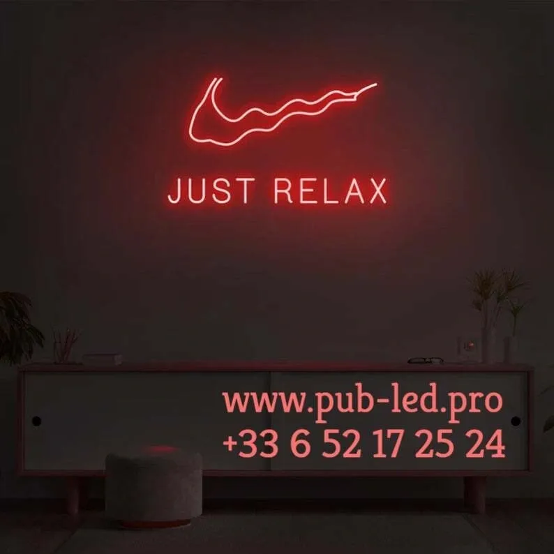 Avec le Néon Flex Just Relax, la personnalisation est au cœur de l’expérience. Que vous souhaitiez une enseigne lumineuse sobre ou un panneau lumineux aux couleurs vibrantes, le néon flex personnalisé vous permet de créer exactement ce que vous avez en tête. Vous pouvez choisir la taille, les couleurs, ainsi que la typographie, pour que le message “Just Relax” s’intègre parfaitement à l’ambiance de votre pièce. Cette décoration néon personnalisée s’adapte à vos préférences et à votre style de vie.