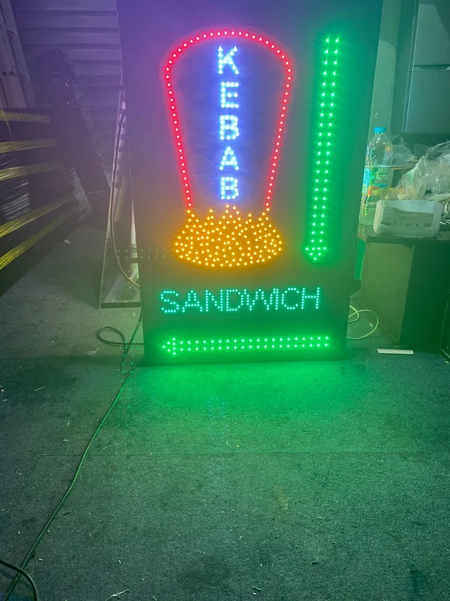 Une signalisation pour kebab efficace est cruciale pour attirer de nouveaux clients. Avec notre panneau lumineux pour kebab, vous assurez une visibilité permanente de votre établissement, le rendant accueillant et professionnel. Une signalisation claire et engageante donne envie aux passants de s’arrêter pour découvrir vos plats. Plus votre enseigne est visible, plus vous augmentez vos chances d’attirer des clients et d’augmenter vos ventes. Ce panneau est conçu pour donner envie aux passants de faire une pause gourmande chez vous.