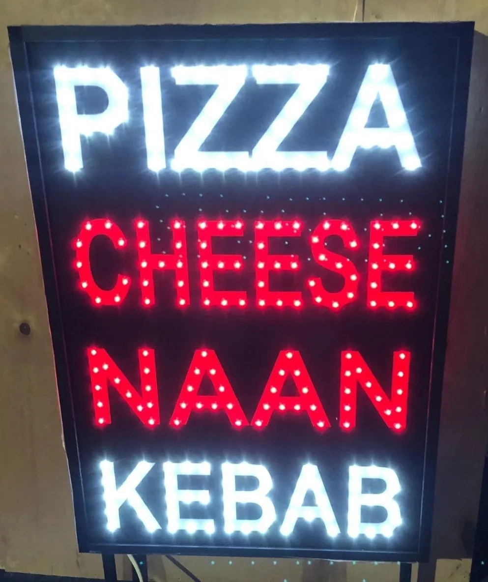 ENSEIGNE LUMINEUSE LED DOUBLE FACES STOP TROTTOIRE “PIZZA” EXTERNE PRÊT À INSTALLER AVEC ANIMATION ET TÉLÉCOMMANDE RECHARGEABLE 130X33cm