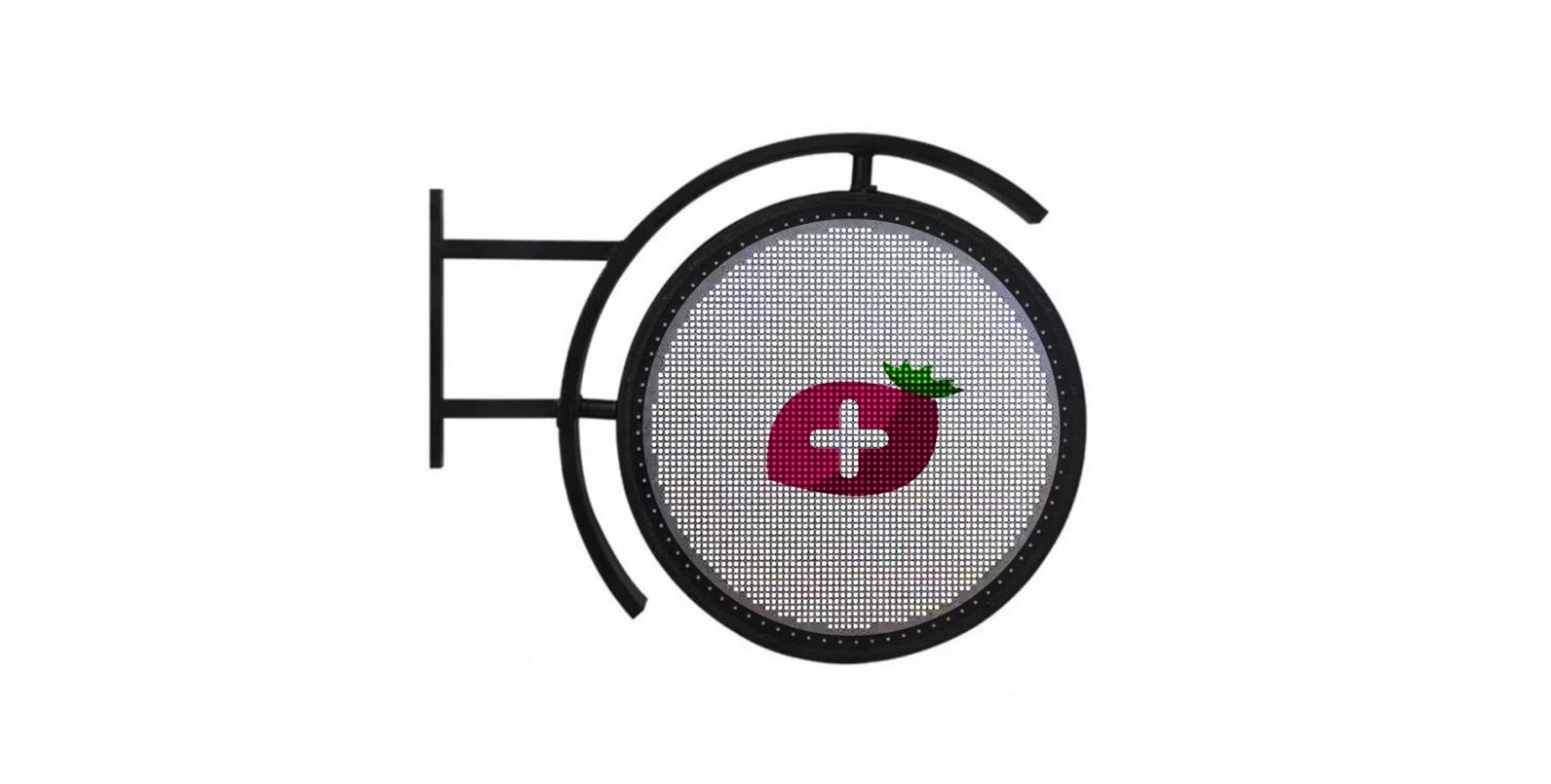 ENSEIGNE LUMINEUSE LED ECRAN DRAPEAU CIRCULAIRE EXTERNE ÉTANCHE PUBLICITAIRE P4 DOUBLE FACES PROGRAMMABLE PRÊT À INSTALLER