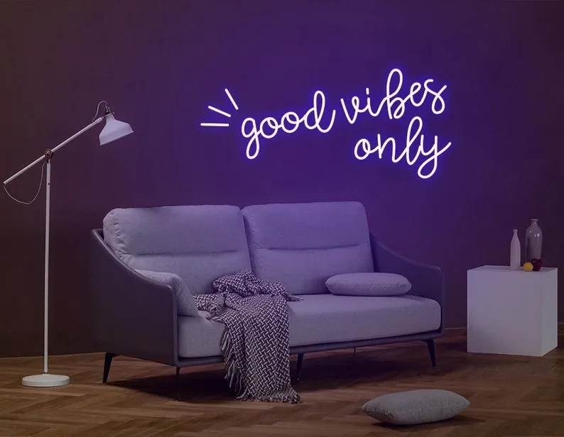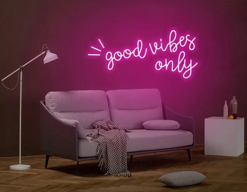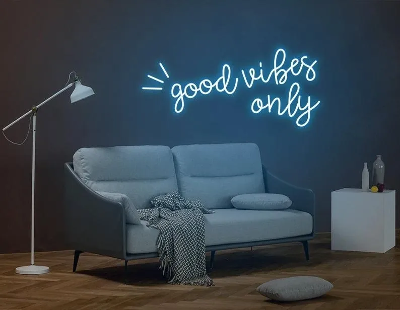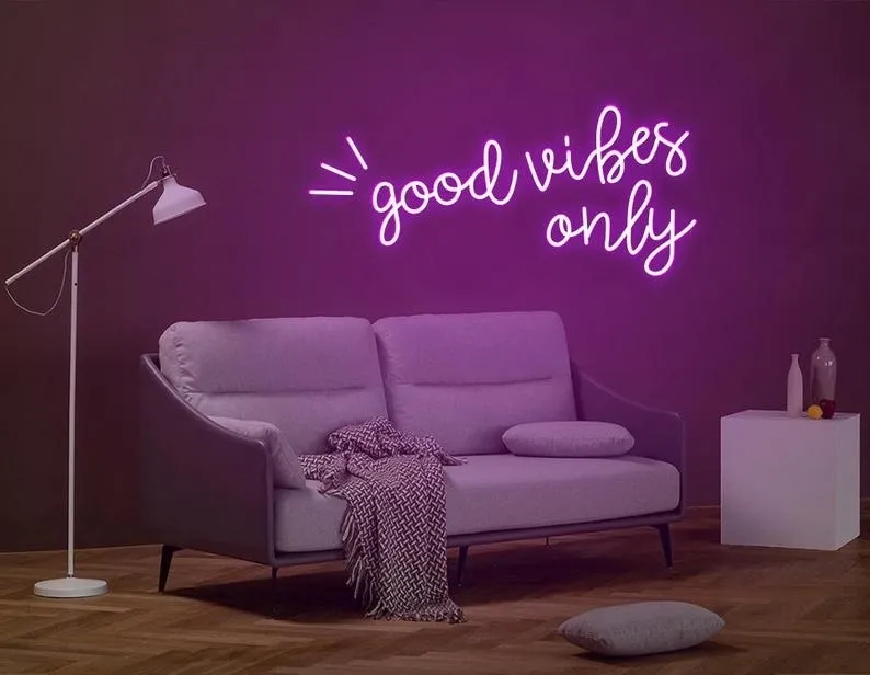 ENSEIGNE LUMINEUSE NÉON “GOOD VIBES ONLY” FLEX PERSONNALISÉE, CHOIX DE POLICE ET COULEUR