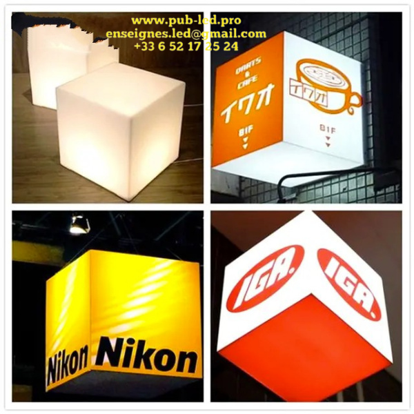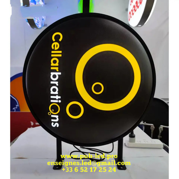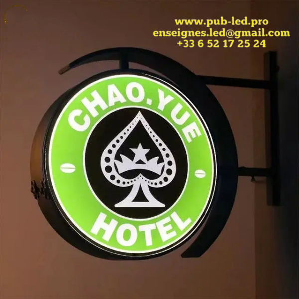 1. Visibilité 360° : Grâce à son design double face, cette enseigne lumineuseassure une visibilité maximale, attirant l’attention des passants sous tous les angles.