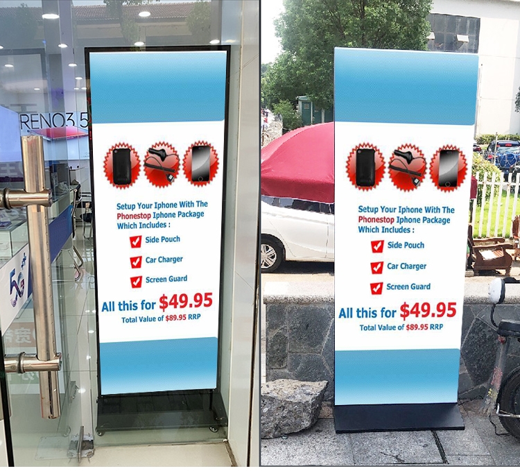 Panneau de trottoir lumineux et enseigne publicitaire amovible